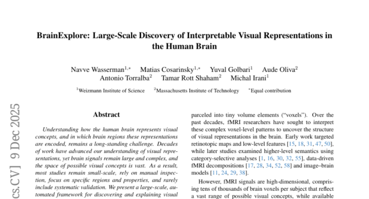 这项由魏茨曼科学研究所的纳夫·瓦瑟曼(Navve Wasserman)、马蒂亚斯·科萨林斯基(Matias Cosarinsky)、尤瓦尔·戈尔巴里(Yuval Golbari)和米哈尔·伊拉尼(Michal Irani),以及麻省理工学院的奥德·奥利瓦(Aude Oliva)、安东尼奥·托拉尔巴(Antonio Torralba)和塔马尔·罗特·沙哈姆(Tamar Rott Shaham)共同完成的研究发表于2024年12月。这篇题为"BrainExplore: Large-Scale Discovery of Interpretable Visual Representations in the Human Brain"的论文首次提出了一个能够大规模自动发现人脑视觉表征的框架。