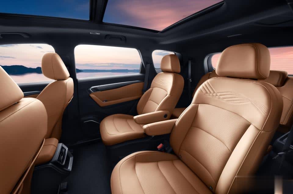 尺寸上,486519101770 毫米的长宽高与2825毫米轴距,进一步巩固“大家庭全能SUV”的产品定位。6 座版本采用 2+2+2 布局,第二排独立座椅配备扶手,中间165mm 宽的通道让第三排进出更便捷,适合注重乘坐品质的成长型家庭;7 座布局则以 2+3+2 形式满足多人口家庭需求,2825mm 轴距确保第三排乘客仍有充足腿部空间,彻底告别 “蜷缩坐姿”。